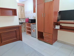 We offer a furnished room which is ready-to-live, with a private space equipped with essential amenities, allowing for comfort, focus, and independence without the stress of buying or moving furniture.